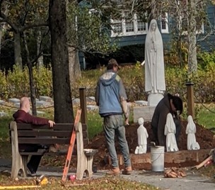 David Walsh was hired to remove the old steps and re-design the pathway to the Shrine, remove large stones from the Shrine as well as remove low-hanging branches and dying shrubs to enhance the tidiness, visibility and accessibility to the Shrine. The Sisters are delighted with the project and are grateful to these generous men and pray that their families will be richly blessed for their loving service to us.